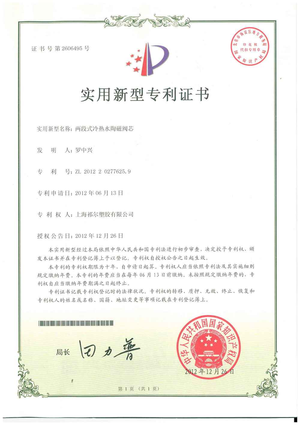Two-stage hot and cold water ceramic valve core